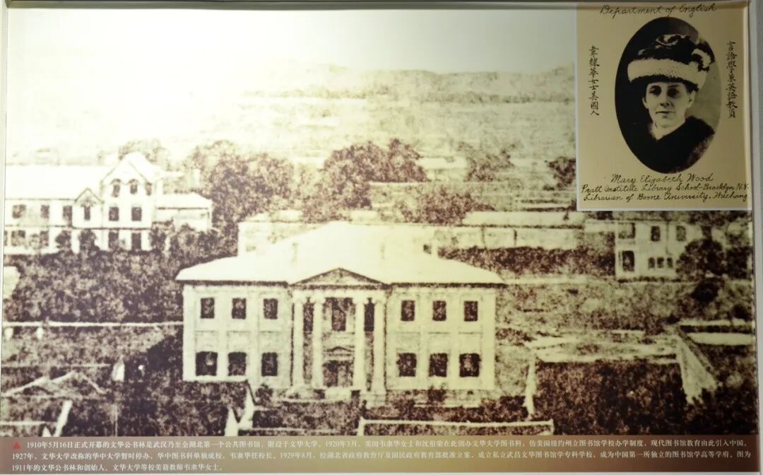 韦棣华(1861.08.22~1931.05.01),Mary Elizabeth Wood,中国近代新图书馆运动的倡导者。1861年8月22日出生于美国纽约,1900年来华,在文华书院担任英语教师。1910年,创办了中国近代第一个真正意义上的“公共”图书馆—文华公书林。1920年创立了中国第一所图书专科学校—文华图书馆学专科学校。1931年5月1日韦棣华女士因心脏病病逝于武昌,享年69岁。她为中国现代图书馆事业的建设贡献了毕生的精力,中华民国第二任总统黎元洪称她为“中国现代图书馆运动之皇后”。